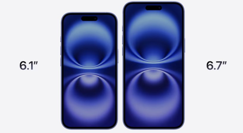 아이폰 16은 6.1인치, 아이폰 16 플러스는 6.7인치입니다.